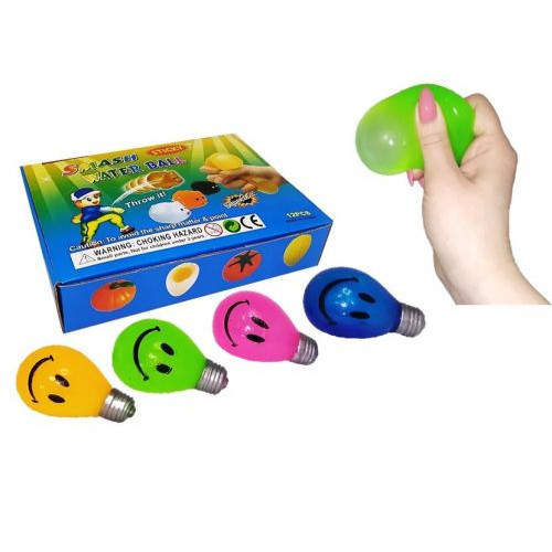 Набор антистресс игрушек в виде лампочек. 4 цвета: синий, розовый, жёлтый и салатовый. Внутри игрушка наполнена водой. Её можно мять и сжимать. Приятная на ощупь, успокаивает нервы. 12 штук в наборе. Размер одной лампочки: 8 см.