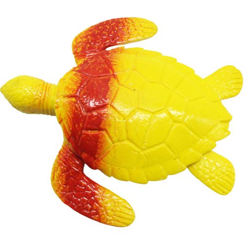 Яркая резиновая черепаха. Небольшая игрушка размером 9х8х1,5 см. Выполнена из качественных и безопасных материалов. Для детей от 3-х лет.