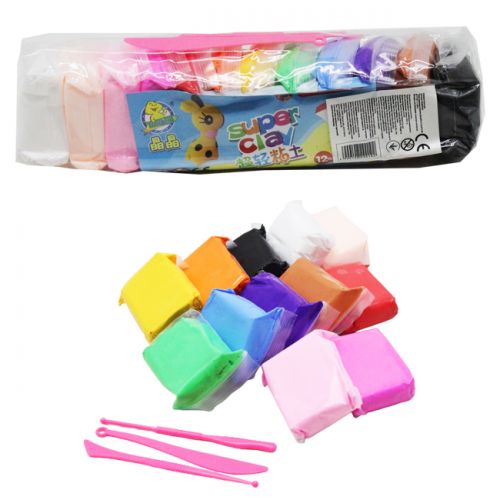Набор креативного творчества 'Super Clay' - 12 брикетов теста разных цветов. Тесто (масса для лепки) приятное на ощупь, мягкое, не липнет к рукам.