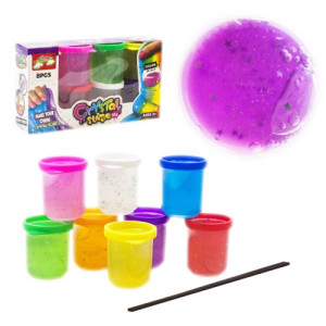Слайм с легкостью растягивается в разные стороны, а его гладкая яркая поверхность не оставляет следов и не липнет к рукам и одежде, растягивается и надувается. В наборе 8 ярких цветов со звёздочками. Каждый слайм хранится в индивидуальной баночке.