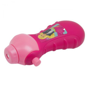 Пластиковый проектор, который может проектировать на стену 24 картинки. При нажатии на кнопку загорается фонарь, который транслирует изображения на поверхность. Верхняя часть проектора вращается на 90 градусов. Работает от батареек.