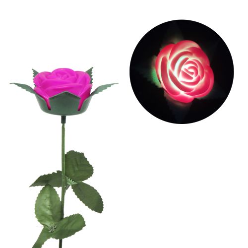Светящаяся роза, длина - 40 см. Красивая пластиковая розочка, которая при включении светится 8 разными цветами. Представлена в целлофановой упаковке, как настоящий букет. Будет прекраснім подарком на праздники как взрослым, так и детям.