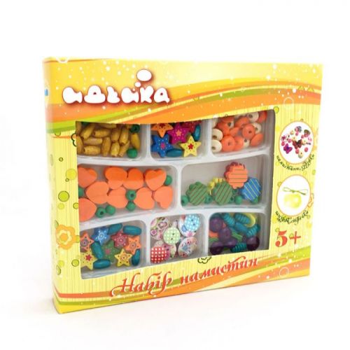 Набор бусин для создания украшений и домашнего декора. Состоит из бусин и пуговиц разных цветов и форм.