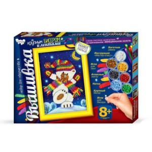 Вышивка крупным бисером и лентами. В наборе: схема-рисунок на основе, инструкция, игла для лент, нитки, атласные ленты, крупный бисер, игла для бисера, багетная рамка. Схема-рисунок напечатана на оригинальном 'Венецианском холсте'.