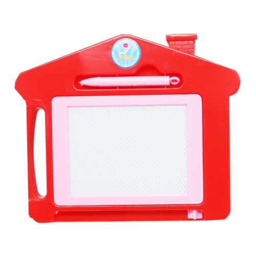 Яркая пластиковая дощечка для рисования. Выполнена в форме домика. Имеет магнитную основу. В комплект входит магнитная ручка. Готовый рисунок можно стереть, потянув за бегунок внизу доски. Размер поля для рисования - 11,5х8,5 см.