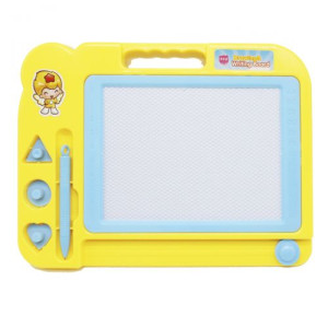 Яркая пластиковая дощечка для рисования. Имеет магнитную основу. В наборе: магнитная ручка, 3 штампика и дощечка. Готовый рисунок можно стереть, потянув за бегунок внизу доски.
