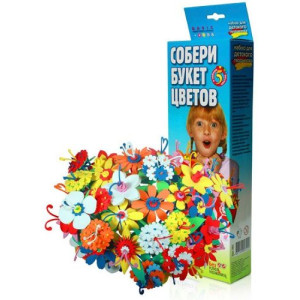 Набор 'Букет цветов'. Из этого набора можно сформировать букет из пяти разноцветных цветов. Высота цветка 30 см. Детали соединяются без помощи клея, поэтому цветы можно собирать не единоразово. Для детей от 3-х лет.