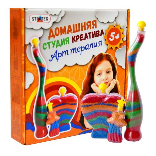 Набор для творчества 'Домашняя студия креатива: Арт терапия'. Набор включает три различные фигурные баночки и сказочный песочек, из которого можно создавать фантазийные постройки.