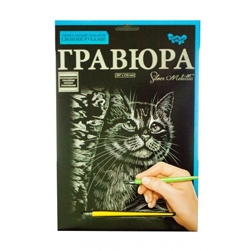 Гравюра Dankotoys Silver Metallic: Кошка А4