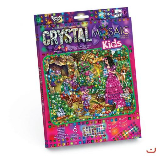 Набор для креативного творчества 'CRYSTAL MOSAIC KIDS'.Серия креативного творчества, для создания красивой мозаики из разноцветных кристаллов. Каждая форма кристаллов наклеена на прозрачную палетку и уже имеет клеевой слой. 6 разных форм кристаллов.