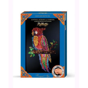 С помощью набора для творчества можно создать красивую и яркую картину из пайеток. Инструкция: возьмите заготовку-рамку, с помощью гвоздиков (по углам) закрепите цветную схему - рисунок' и приступайте к созданию шедевра. Вам не понадобится клей, просто прикалывайте необходимый цвет пайеток гвоздиками на рисунок, прикреплённый к пенопластовой заготовке. Для того, чтобы придать картине завершенный вид, в комплекте есть набор блестящих уголков на глиттерной самоклейке. Просто отсоедините защитный слой и прикрепите уголки по углам рамки.