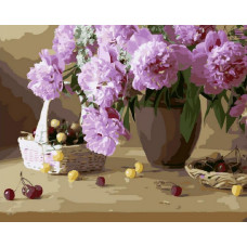 Картина по номерам Rainbow Art Розовые пионы и вишни 50х40 В наличии:0шт.Артикулr14171