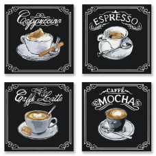 Картина по номерам Идейка из 4х картин. Полиптих Вкусный кофе KNP001 18х18 см В наличии:0шт.Артикулr9925