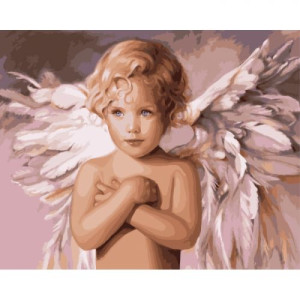 Картина по номерам 'Ангел удачи'. Для того, чтобы нарисовать картину, необходимо рисовать по пронумерованным контурам, которые соответсвуют цвету краски. В наборе: натуральный холст на подрамнике с галерейной натяжкой, бумажная копия с контурным рисунком картины (на картине нанесена схема контуров изображения с нумерацией), 3 нейлоновые художественные кисти, палитра акриловых красок в контейнерах, крепление. Все необходимые краски уже в комплекте и не требуют смешивания. Размер: 40 х 50 см. Количество цветов: 23. Сложность - ★★★★.