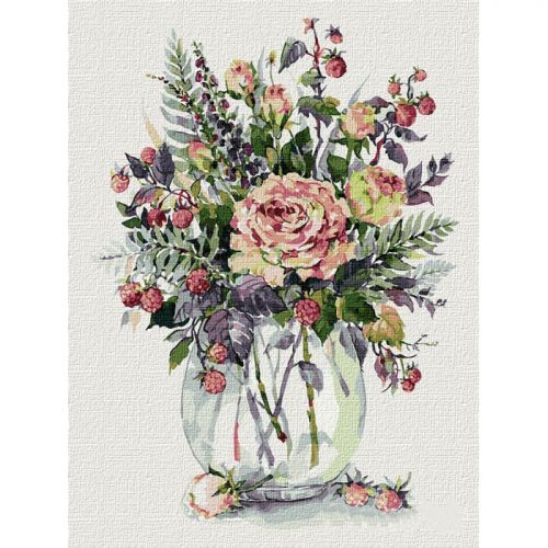 Картина по номерам 'Душистый букет'. Для того, чтобы нарисовать картину, необходимо рисовать по пронумерованным контурам, которые соответствуют цвету краски. В наборе: натуральный холст на подрамнике с галерейной натяжкой, бумажная копия с контурным рисунком картины (на картине нанесена схема контуров изображения с нумерацией), 2 нейлоновые художественные кисти, палитра акриловых красок в контейнерах, крепление. Все необходимые краски уже в комплекте и не требуют смешивания. Размер: 30 х 40 см. Количество цветов: 32. Сложность - ★★★★★.