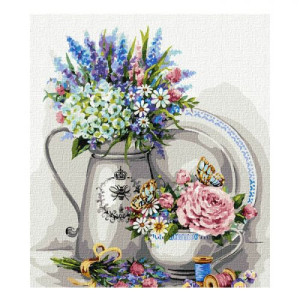 Картина по номерам 'Изысканный натюрморт'. Для того, чтобы нарисовать картину, необходимо рисовать по пронумерованным контурам, которые соответствуют цвету краски. В наборе: натуральный холст на подрамнике с галерейной натяжкой, бумажная копия с контурным рисунком картины (на картине нанесена схема контуров изображения с нумерацией), 3 нейлоновые художественные кисти, палитра акриловых красок в контейнерах, крепление. Все необходимые краски уже в комплекте и не требуют смешивания. Размер: 40 х 50 см. Количество цветов: 28. Сложность - ★★★★★.