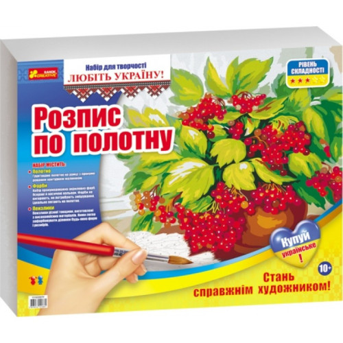 В комплекте: холст с нанесенным рисунком, краски, кисточка.