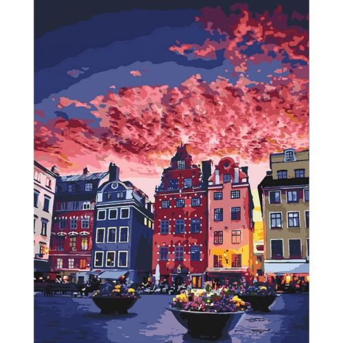 Картина по номерам 'Каникулы в Стокгольме'. Для того, чтобы нарисовать картину, необходимо рисовать по пронумерованным контурам, которые соответствуют цвету краски. В наборе: натуральный холст на подрамнике с галерейной натяжкой, бумажная копия с контурным рисунком картины (на картине нанесена схема контуров изображения с нумерацией), 3 нейлоновые художественные кисти, палитра акриловых красок в контейнерах, крепление. Все необходимые краски уже в комплекте и не требуют смешивания. Размер: 40 х 50 см. Количество цветов: 30. Сложность - ★★★★★.