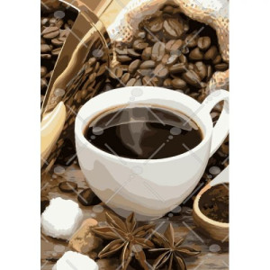 Картина по номерам 'Кофейное настроение'. Для того, чтобы нарисовать картину, необходимо рисовать по пронумерованным контурам, которые соответствуют цвету краски. В наборе: натуральный холст на подрамнике с галерейной натяжкой, бумажная копия с контурным рисунком картины (на картине нанесена схема контуров изображения с нумерацией), 3 нейлоновые художественные кисти, палитра акриловых красок в контейнерах, крепление. Все необходимые краски уже в комплекте и не требуют смешивания. Размер: 35 х 50 см. Количество цветов: 24. Сложность - ★★★★.