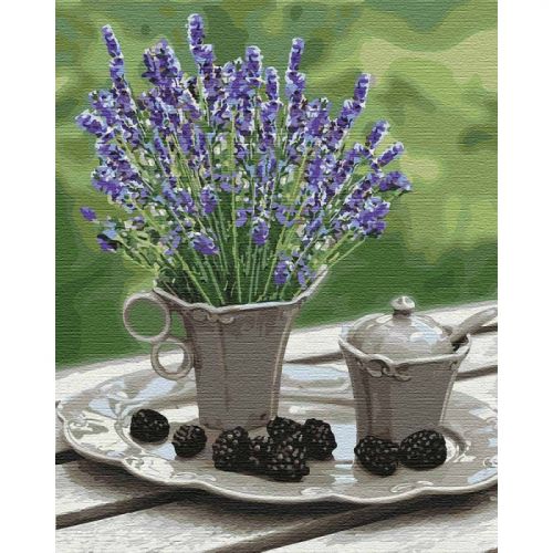 Картина по номерам 'Лавандовое настроение'. Для того, чтобы нарисовать картину, необходимо рисовать по пронумерованным контурам, которые соответствуют цвету краски. В наборе: натуральный холст на подрамнике с галерейной натяжкой, бумажная копия с контурным рисунком картины (на картине нанесена схема контуров изображения с нумерацией), 3 нейлоновые художественные кисти, палитра акриловых красок в контейнерах, крепление. Все необходимые краски уже в комплекте и не требуют смешивания. Размер: 40 х 50 см. Количество цветов: 30. Сложность - ★★★★★.