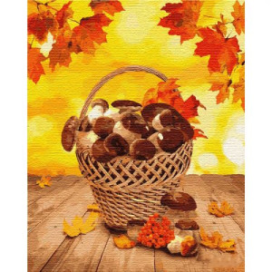 Картина по номерам 'Лесные дары'. Для того, чтобы нарисовать картину, необходимо рисовать по пронумерованным контурам, которые соответствуют цвету краски. В наборе: натуральный холст на подрамнике с галерейной натяжкой, бумажная копия с контурным рисунком картины (на картине нанесена схема контуров изображения с нумерацией), 3 нейлоновые художественные кисти, палитра акриловых красок в контейнерах, крепление. Все необходимые краски уже в комплекте и не требуют смешивания. Размер: 40 х 50 см. Количество цветов: 30. Сложность - ★★★★★.