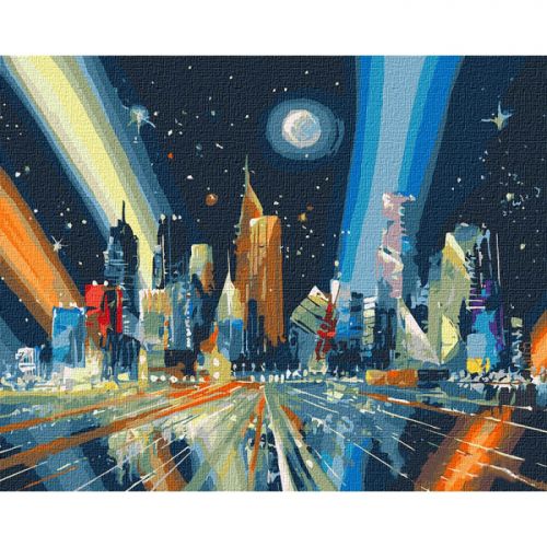 Картина по номерам 'Лучи мегаполиса'. Для того, чтобы нарисовать картину, необходимо рисовать по пронумерованным контурам, которые соответствуют цвету краски. В наборе: натуральный холст на подрамнике с галерейной натяжкой, бумажная копия с контурным рисунком картины (на картине нанесена схема контуров изображения с нумерацией), 3 нейлоновые художественные кисти, палитра акриловых красок в контейнерах. Все необходимые краски уже в комплекте и не требуют смешивания. Размер: 40 х 50 см. Количество цветов: 31. Сложность - ★★★★.