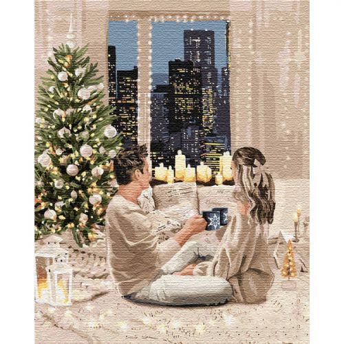 Картина по номерам 'Лучший Новый год'. Для того, чтобы нарисовать картину, необходимо рисовать по пронумерованным контурам, которые соответствуют цвету краски. В наборе: натуральный холст на подрамнике с галерейной натяжкой, бумажная копия с контурным рисунком картины (на картине нанесена схема контуров изображения с нумерацией), 3 нейлоновые художественные кисти, палитра акриловых красок в контейнерах. Все необходимые краски уже в комплекте и не требуют смешивания. Размер: 40 х 50 см. Количество цветов: 34. Сложность - ★★★★.