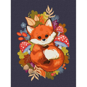 Картина по номерам 'Маленькая лисичка'. Для того чтобы нарисовать картину, необходимо рисовать по пронумерованным контурам, которые соответствуют цвету краски. В наборе: натуральный холст на подрамнике с галерейной натяжкой, бумажная копия с контурным рисунком картины (на картине нанесена схема контуров изображения с нумерацией), 2 нейлоновые художественные кисти, палитра акриловых красок в контейнерах. Все необходимые краски уже в комплекте и не требуют смешивания. Размер: 40 х 30 см. Количество цветов: 19. Сложность - ★★★★.