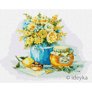 - Натуральный холст на подрамнике с галерейной натяжкой. На картине нанесена схема контуров изображения с нумерацией