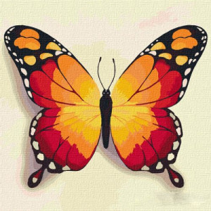 Картина по номерам 'Оранжевая бабочка'. Для того, чтобы нарисовать картину, необходимо рисовать по пронумерованным контурам, которые соответствуют цвету краски. В наборе: натуральный холст на подрамнике с галерейной натяжкой, бумажная копия с контурным рисунком картины (на картине нанесена схема контуров изображения с нумерацией), 2 нейлоновые художественные кисти, палитра акриловых красок в контейнерах. Все необходимые краски уже в комплекте и не требуют смешивания. Размер: 25 х 25 см. Количество цветов: 24. Сложность - ★★★.
