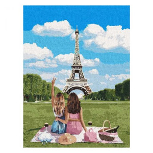 Картина по номерам 'Подружки в Париже'. Для того чтобы нарисовать картину, необходимо рисовать по пронумерованным контурам, которые соответствуют цвету краски. В наборе: натуральный холст на подрамнике с галерейной натяжкой, бумажная копия с контурным рисунком картины (на картине нанесена схема контуров изображения с нумерацией), 3 нейлоновые художественные кисти, палитра акриловых красок в контейнерах. Все необходимые краски уже в комплекте и не требуют смешивания. Размер: 40 х 50 см. Количество цветов: 24. Сложность - ★★★★.