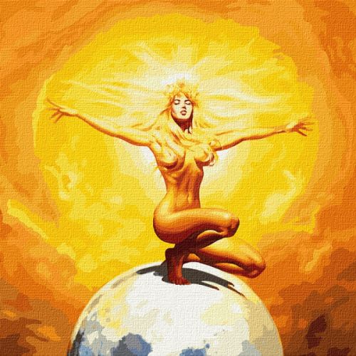 Картина по номерам 'Повелительница солнца с красками металик'. Для того, чтобы нарисовать картину, необходимо рисовать по пронумерованным контурам, которые соответствуют цвету краски. В наборе: натуральный холст на подрамнике с галерейной натяжкой, бумажная копия с контурным рисунком картины (на картине нанесена схема контуров изображения с нумерацией), 3 нейлоновые художественные кисти, палитра акриловых красок в контейнерах. Все необходимые краски уже в комплекте и не требуют смешивания. Размер: 50 х 50 см. Количество цветов: 40. Сложность - ★★★.