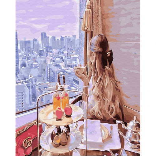 Картина по номерам Rosa Rainbow Art Чаепитие с видом на город 50x40