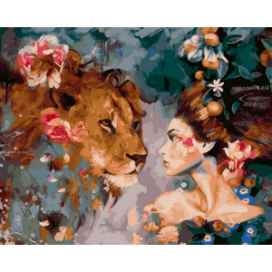 Картина по номерам Rosa Rainbow Art Девушка и лев 50x40