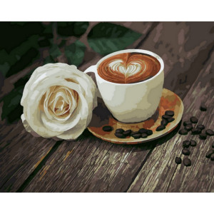 Картина по номерам Rosa Rainbow Art Кофе и белая роза 50x40