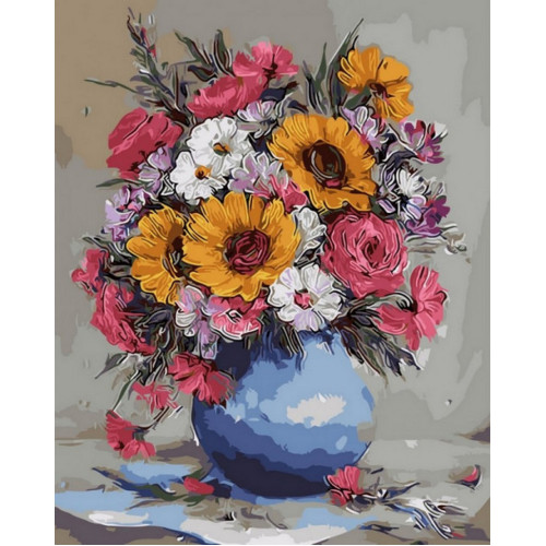 Картина по номерам Rosa Rainbow Art Яркий букет в синей вазе 50x40