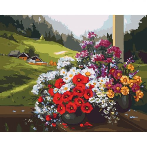 Картина по номерам 'Родной край'. Для того, чтобы нарисовать картину, необходимо рисовать по пронумерованным контурам, которые соответствуют цвету краски. В наборе: натуральный холст на подрамнике с галерейной натяжкой, бумажная копия с контурным рисунком картины (на картине нанесена схема контуров изображения с нумерацией), 3 нейлоновые художественные кисти, палитра акриловых красок в контейнерах, крепление. Все необходимые краски уже в комплекте и не требуют смешивания. Размер: 40 х 50 см. Количество цветов: 32. Сложность -★★★★.