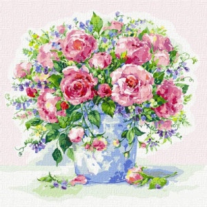 Картина по номерам 'Розовые розы'. Для того, чтобы нарисовать картину, необходимо рисовать по пронумерованным контурам, которые соответствуют цвету краски. В наборе: натуральный холст на подрамнике с галерейной натяжкой, бумажная копия с контурным рисунком картины (на картине нанесена схема контуров изображения с нумерацией), 2 нейлоновые художественные кисти, палитра акриловых красок в контейнерах, крепление. Все необходимые краски уже в комплекте и не требуют смешивания. Размер: 40 х 40 см. Количество цветов: 30. Сложность - ★★★★★.