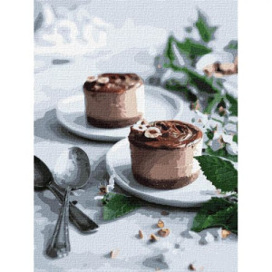Картина по номерам 'Шоколадные пирожные'. Для того, чтобы нарисовать картину, необходимо рисовать по пронумерованным контурам, которые соответствуют цвету краски. В наборе: натуральный холст на подрамнике с галерейной натяжкой, бумажная копия с контурным рисунком картины (на картине нанесена схема контуров изображения с нумерацией), 3 нейлоновые художественные кисти, палитра акриловых красок в контейнерах, крепление. Все необходимые краски уже в комплекте и не требуют смешивания. Размер: 40 х 30 см. Количество цветов: 33. Сложность - ★★★.