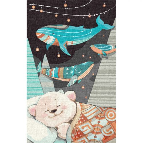Картина по номерам 'Сладкие сны мишутки'. Для того, чтобы нарисовать картину, необходимо рисовать по пронумерованным контурам, которые соответствуют цвету краски. В наборе: натуральный холст на подрамнике с галерейной натяжкой, бумажная копия с контурным рисунком картины (на картине нанесена схема контуров изображения с нумерацией), 3 нейлоновые художественные кисти, палитра акриловых красок в контейнерах, крепление. Все необходимые краски уже в комплекте и не требуют смешивания. Размер: 40 х 25 см. Количество цветов: 32. Сложность - ★★★.