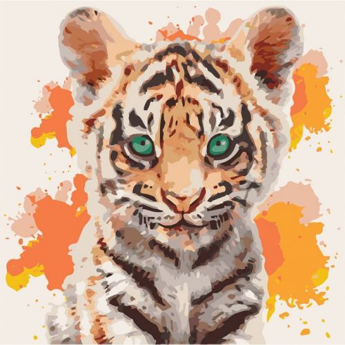 Картина по номерам 'Тигрюля'. Для того, чтобы нарисовать картину, необходимо рисовать по пронумерованным контурам, которые соответствуют цвету краски. В наборе: натуральный холст на подрамнике с галерейной натяжкой, бумажная копия с контурным рисунком картины (на картине нанесена схема контуров изображения с нумерацией), 2 нейлоновые художественные кисти, палитра акриловых красок в контейнерах, крепление. Все необходимые краски уже в комплекте и не требуют смешивания. Размер: 40 х 40 см. Количество цветов: 24. Сложность - ★★★★.