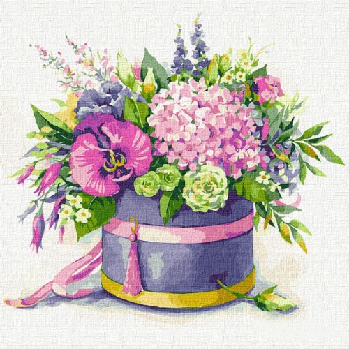 Картина по номерам 'Вдохновение в коробке'. Для того, чтобы нарисовать картину, необходимо рисовать по пронумерованным контурам, которые соответствуют цвету краски. В наборе: натуральный холст на подрамнике с галерейной натяжкой, бумажная копия с контурным рисунком картины (на картине нанесена схема контуров изображения с нумерацией), 2 нейлоновые художественные кисти, палитра акриловых красок в контейнерах, крепление. Все необходимые краски уже в комплекте и не требуют смешивания. Размер: 30 х 30 см. Количество цветов: 27. Сложность - ★★★.