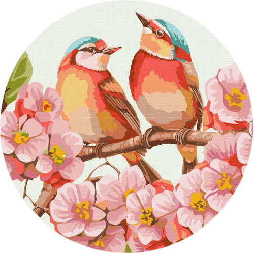 - натуральное полотно на круглом подрамнике с галерейной натяжкой. На картине нанесена схема контуров изображения с нумерацией