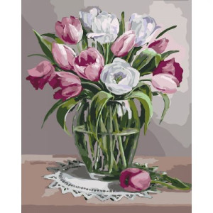 Картина по номерам 'Весенний аромат'. Для того, чтобы нарисовать картину, необходимо рисовать по пронумерованным контурам, которые соответствуют цвету краски. В наборе: натуральный холст на подрамнике с галерейной натяжкой, бумажная копия с контурным рисунком картины (на картине нанесена схема контуров изображения с нумерацией), 3 нейлоновые художественные кисти, палитра акриловых красок в контейнерах, крепление. Все необходимые краски уже в комплекте и не требуют смешивания. Размер: 40 х 50 см. Количество цветов: 30. Сложность - ★★★.