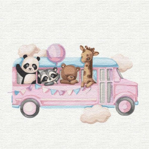 Картина по номерам 'Весёлый автобус'. Для того, чтобы нарисовать картину, необходимо рисовать по пронумерованным контурам, которые соответствуют цвету краски. В наборе: натуральный холст на подрамнике с галерейной натяжкой, бумажная копия с контурным рисунком картины (на картине нанесена схема контуров изображения с нумерацией), 2 нейлоновые художественные кисти, палитра акриловых красок в контейнерах, крепление. Все необходимые краски уже в комплекте и не требуют смешивания. Размер: 30 х 30 см. Количество цветов: 26. Сложность - ★★★.