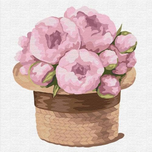 Картина по номерам 'Волшебный букет пионов'. Для того, чтобы нарисовать картину, необходимо рисовать по пронумерованным контурам, которые соответствуют цвету краски. В наборе: натуральный холст на подрамнике с галерейной натяжкой, бумажная копия с контурным рисунком картины (на картине нанесена схема контуров изображения с нумерацией), 2 нейлоновые художественные кисти, палитра акриловых красок в контейнерах, крепление. Все необходимые краски уже в комплекте и не требуют смешивания. Размер: 30 х 30 см. Количество цветов: 21. Сложность - ★★★.