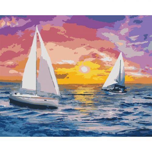 Картина по номерам 'Встречая рассвет'. Для того, чтобы нарисовать картину, необходимо рисовать по пронумерованным контурам, которые соответствуют цвету краски. В наборе: натуральный холст на подрамнике с галерейной натяжкой, бумажная копия с контурным рисунком картины (на картине нанесена схема контуров изображения с нумерацией), 3 нейлоновые художественные кисти, палитра акриловых красок в контейнерах. Все необходимые краски уже в комплекте и не требуют смешивания. Размер: 40 х 50 см. Количество цветов: 25. Сложность - ★★★★.