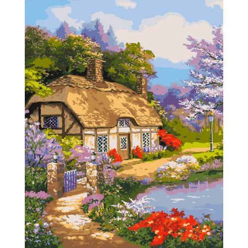 Картина по номерам 'Загородный дом'. Для того, чтобы нарисовать картину, необходимо рисовать по пронумерованным контурам, которые соответствуют цвету краски. В наборе: натуральный холст на подрамнике с галерейной натяжкой, бумажная копия с контурным рисунком картины (на картине нанесена схема контуров изображения с нумерацией), 3 нейлоновые художественные кисти, палитра акриловых красок в контейнерах, крепление. Все необходимые краски уже в комплекте и не требуют смешивания. Размер: 40 х 50 см. Количество цветов: 30. Сложность -★★★★★.