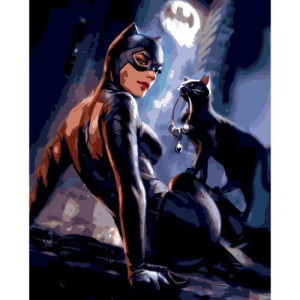 Картина по номерам Женщина-кошка ночью