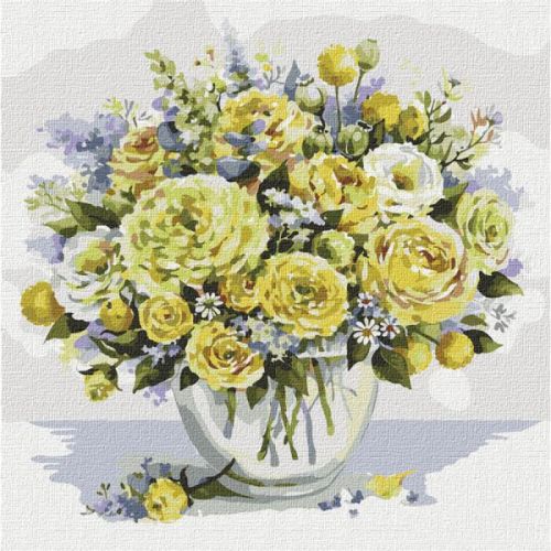 Картина по номерам 'Жёлтое счастье'. Для того чтобы нарисовать картину, необходимо рисовать по пронумерованным контурам, которые соответствуют цвету краски. В наборе: натуральный холст на подрамнике с галерейной натяжкой, бумажная копия с контурным рисунком картины (на картине нанесена схема контуров изображения с нумерацией), 3 нейлоновые художественные кисти, палитра акриловых красок в контейнерах. Все необходимые краски уже в комплекте и не требуют смешивания. Размер: 50 х 50 см. Количество цветов: 28. Сложность - ★★★★.